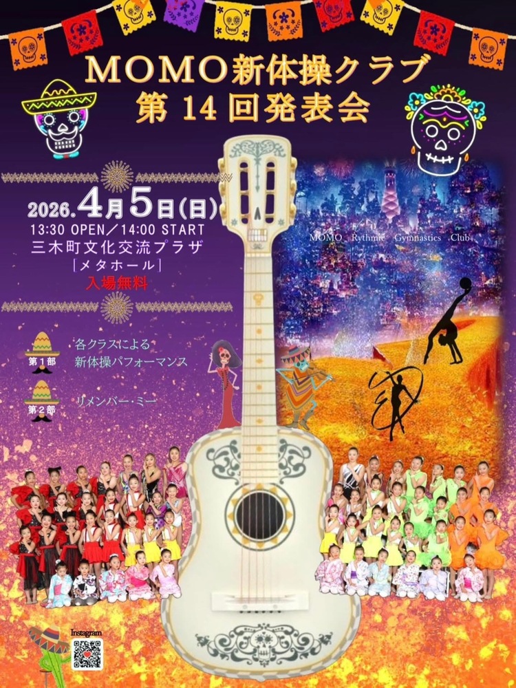 MOMO新体操クラブ 第14回発表会 Schedule 2026/04/05(日) 14:00 - 三木町文化交流プラザメタホール 📍香川県木田郡三木町 開場13:30/開演14:00 MOMO新体操クラブチームの皆さま/吉田春乃 主催:MOMO新体操クラブ 入場無料 MOMO新体操クラブ 第14回発表会にゲスト出演させていただきます! URLをコピーする 報告する